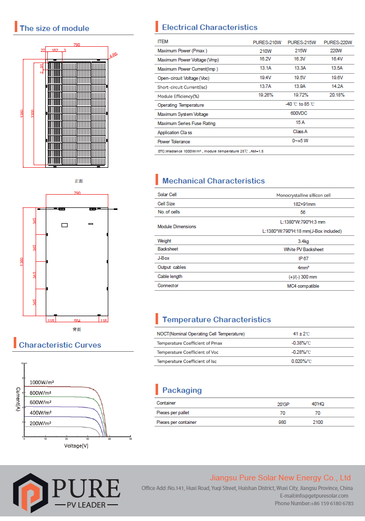Panneaux – Modules - Panneaux monocristallinsRéférence. Marque. Pure Solar New Energy